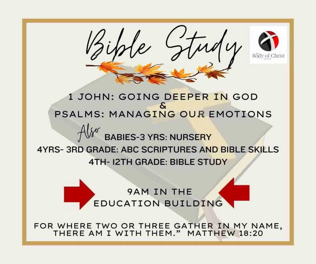 We meet on Sunday Mornings at 9:00 AM in the Education Building.